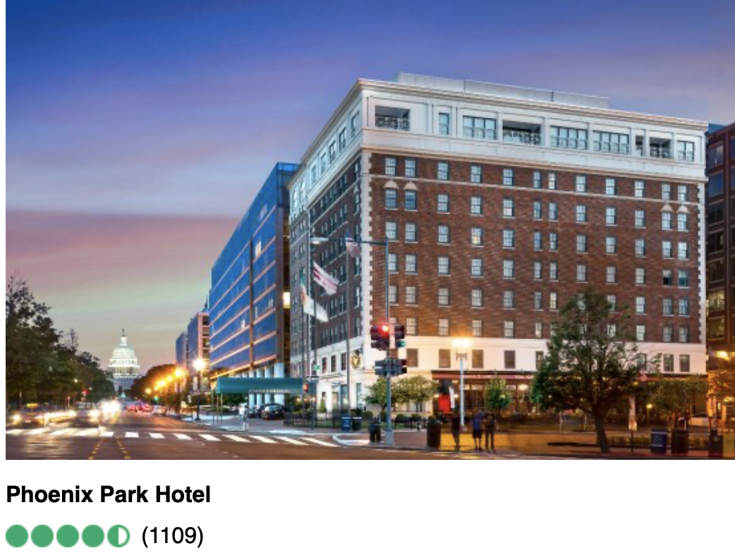 Put in this spot information about Phoenix Park Hotel which was next door to the train station....had an Irish pub and good ratings and walking distance to Capital. Also add how close DAR building is to the area.